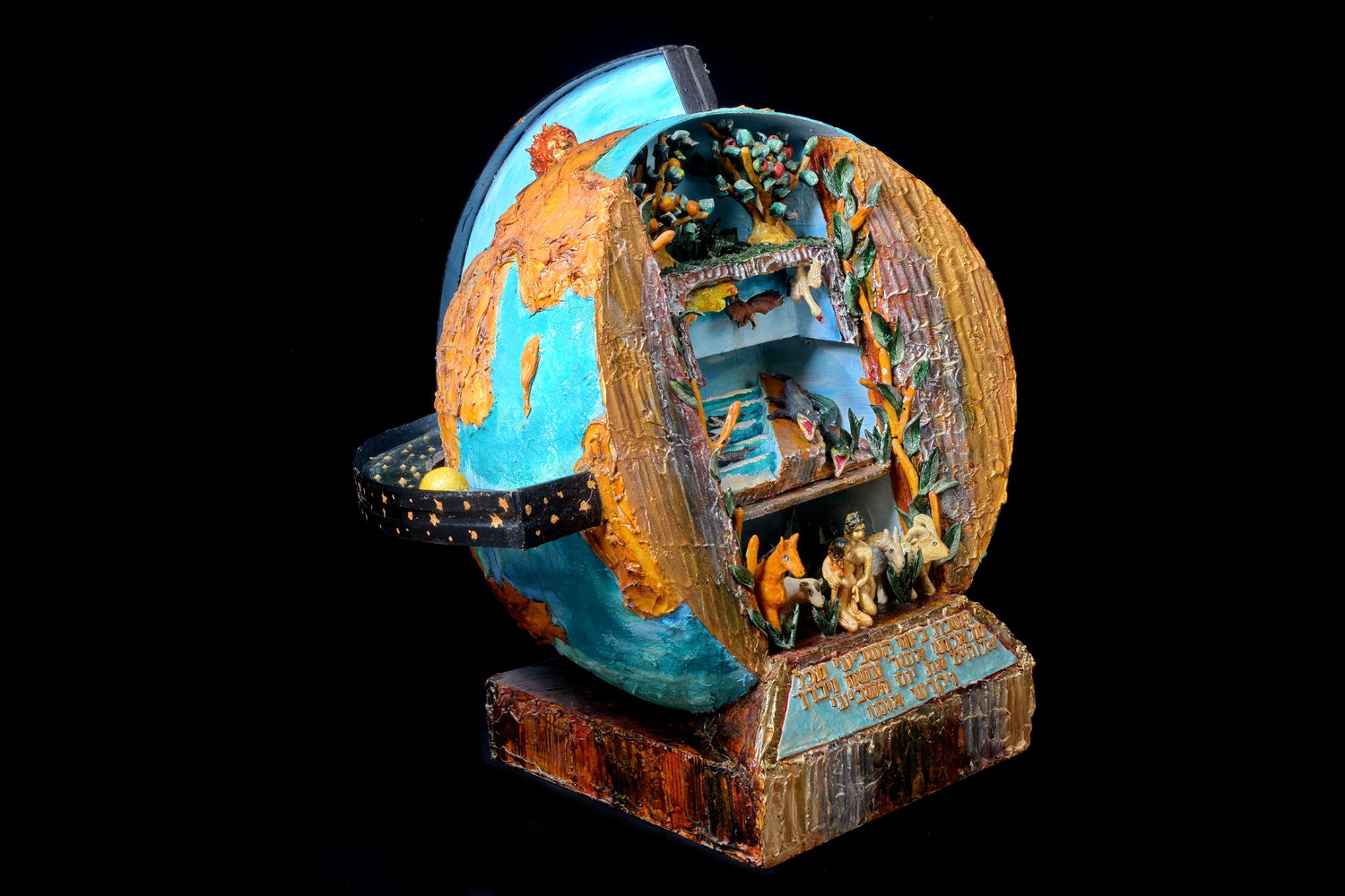 האמן דניאל אביטל מביא לעין הצופה את התרחשות הבריאה בתלת מימד מובנה, מדגיש את המאור הגדול (השמש) והמאור הקטן (הירח) בקווי האורך והרוחב, את הגלובוס, הימים והיבשות, את הדרגתיות הבריאה מהיום הראשון לפי סדר הכתובים,